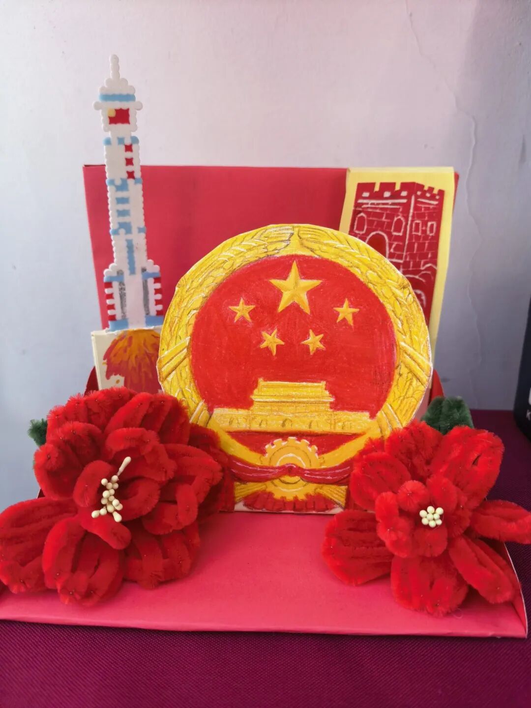 这不是一次简单的手工创作,而是一场沉浸式的思政课堂。同学们将“国家利益”这一宏大主题,转化为可触、可感、可共情的视觉语言。有的作品以“法,不能向不法让步”传递法治信念,有的借“但问耕耘”表达务实精神,还有的通过“硬核守护”致敬平凡英雄……艺术在这里,成为连接知识、情感与价值的桥梁。