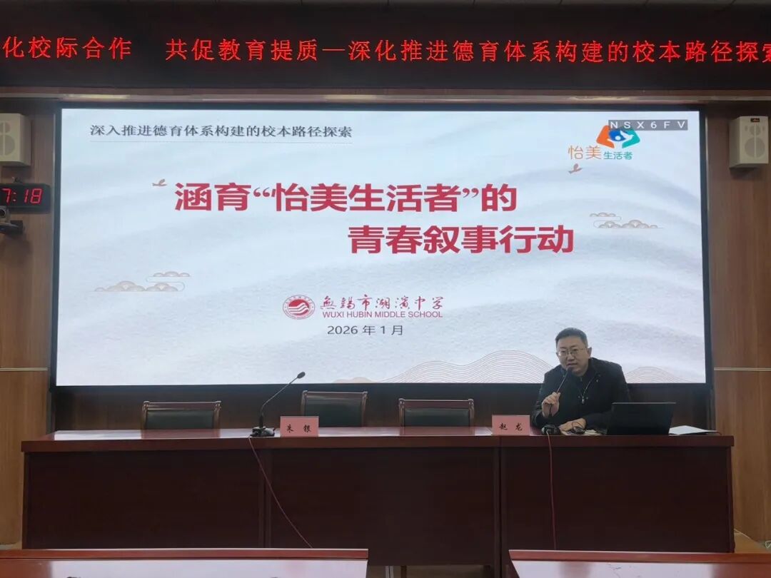 副校长赵龙以《深入推进德育体系构建的校本路径探索》为题,面向连云港外国语学校全体班主任及德育管理团队作专题讲座。他通过典型案例分享与实操方法指导,为对方德育工作的深化开展提供了宝贵借鉴。