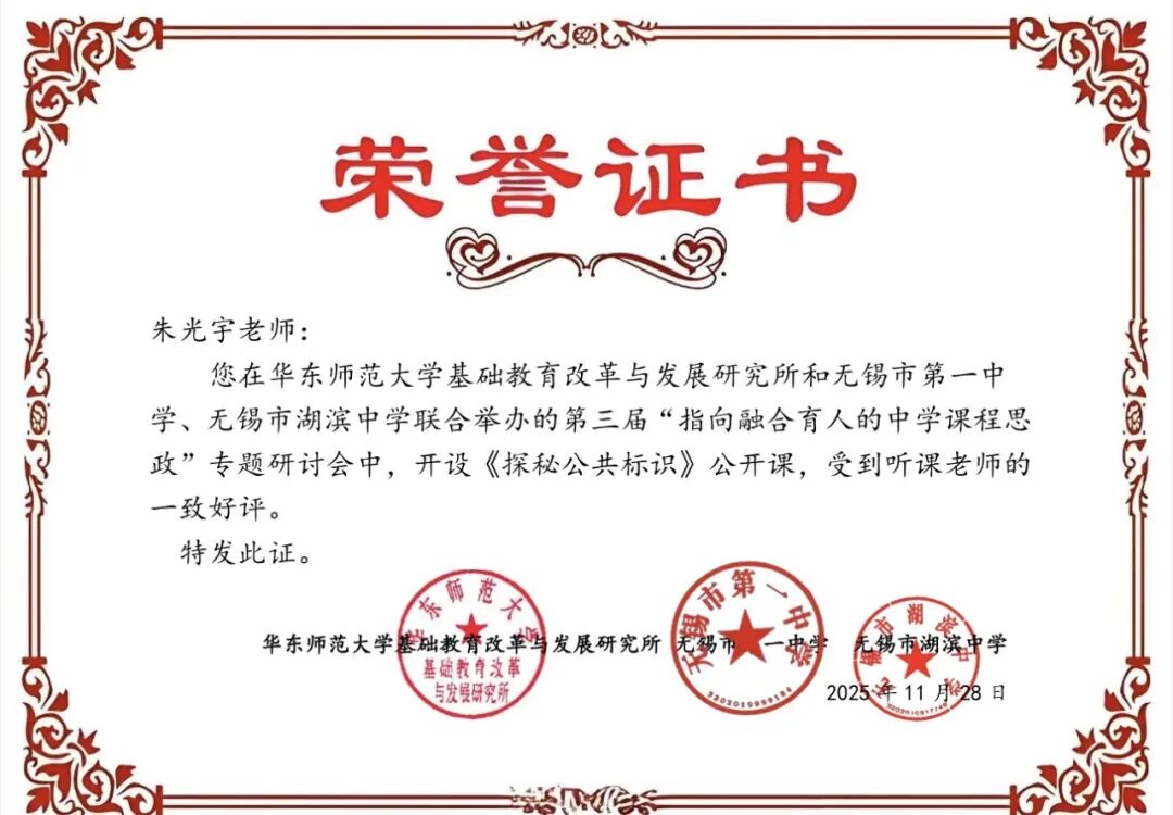 搭建高水平交流平台,鼓励教师在更广范围发声。面向全市成功举办“艺路无界·美育共生”美术公开课教学研讨活动,刘宁、鲍子杰等八位教师分学段展示特色课堂,体现扎实教学功底与多元视野。同时,深度参与市级课程思政专题研讨会,朱光宇老师通过展示课提供“湖滨样本”。教师个人发展方面,李峥、王冰教师参与清华大学美育专题培训班、林方在江苏师范大学美术学院上示范课、范悦获市“精品课”一等奖,充分展现五星级学科组的专业影响力。
