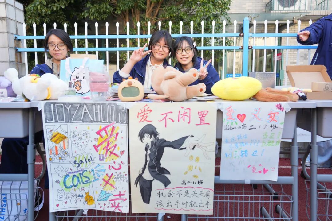 走进摊位,班级海报设计精美,摊位各具创意。孩子们把心爱的毛绒玩具、读过的书籍、亲手做的手工作品,整整齐齐摆在摊位上。