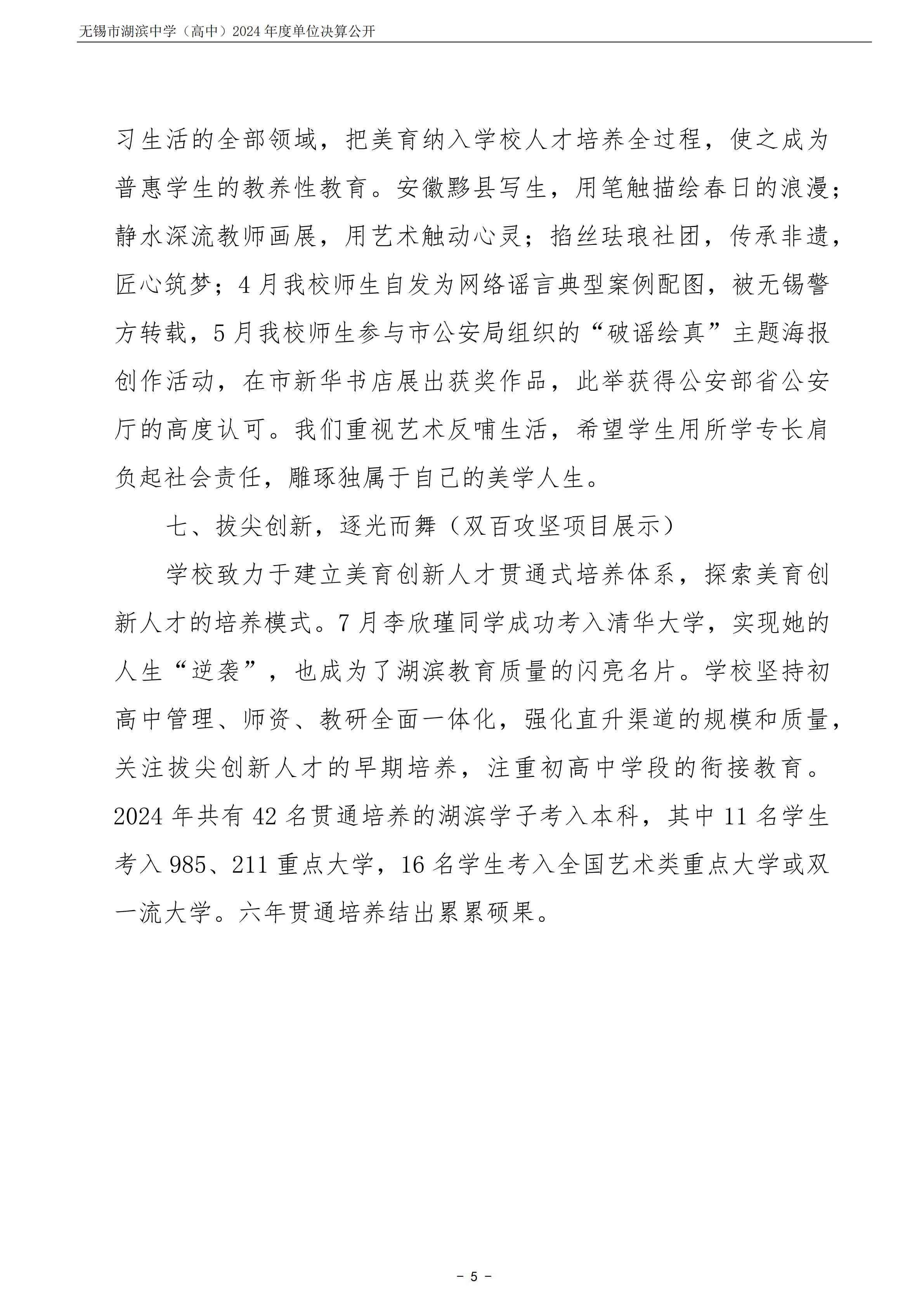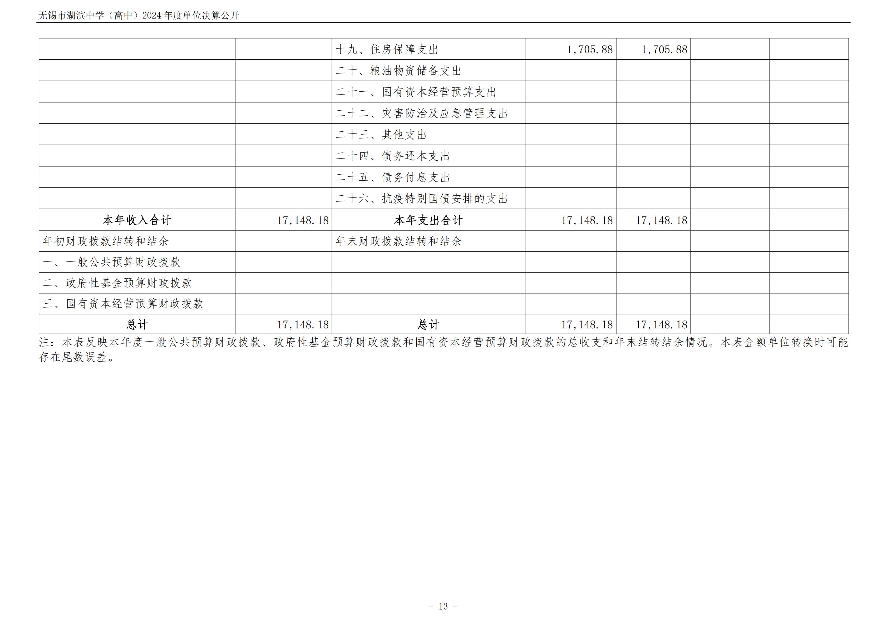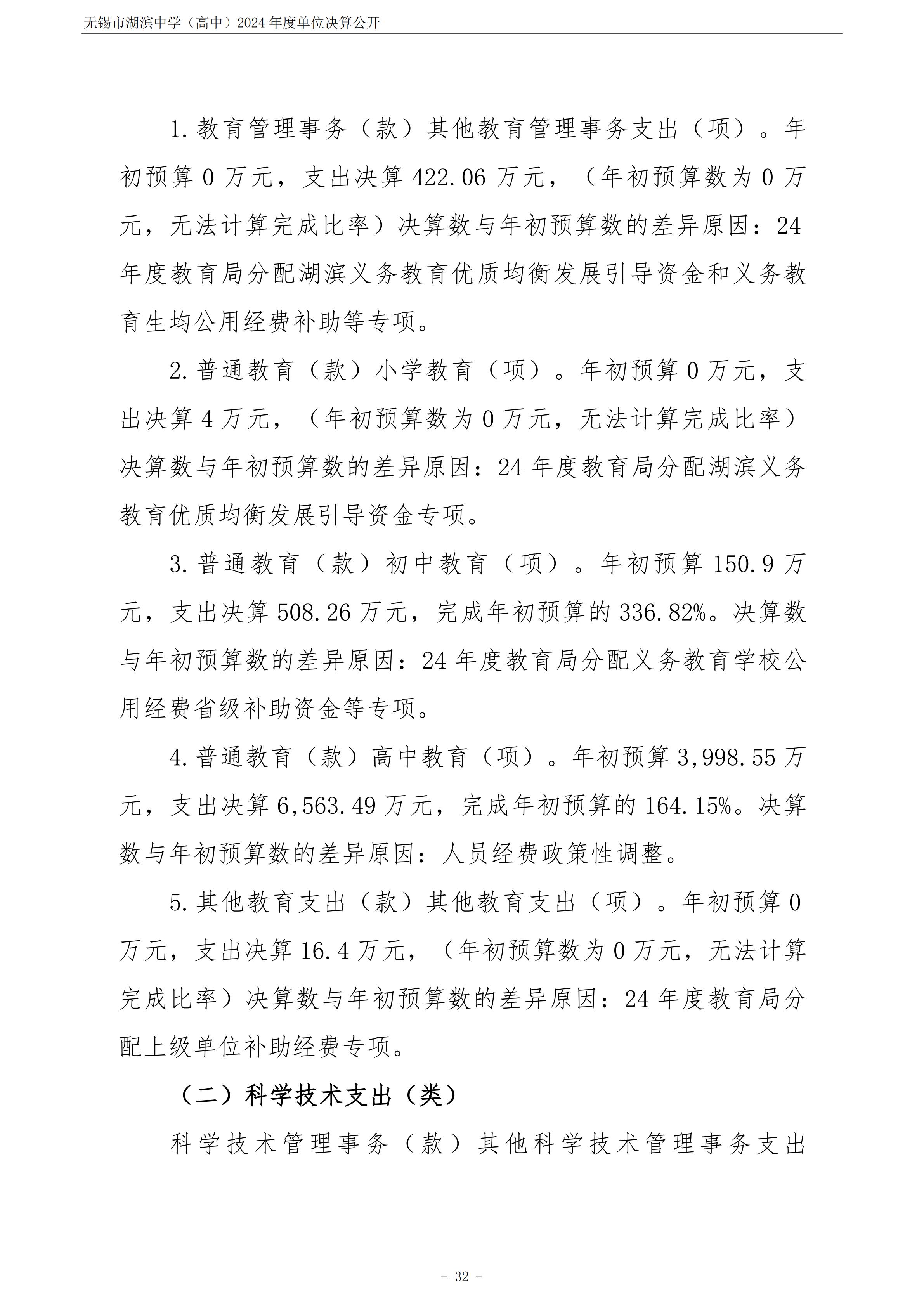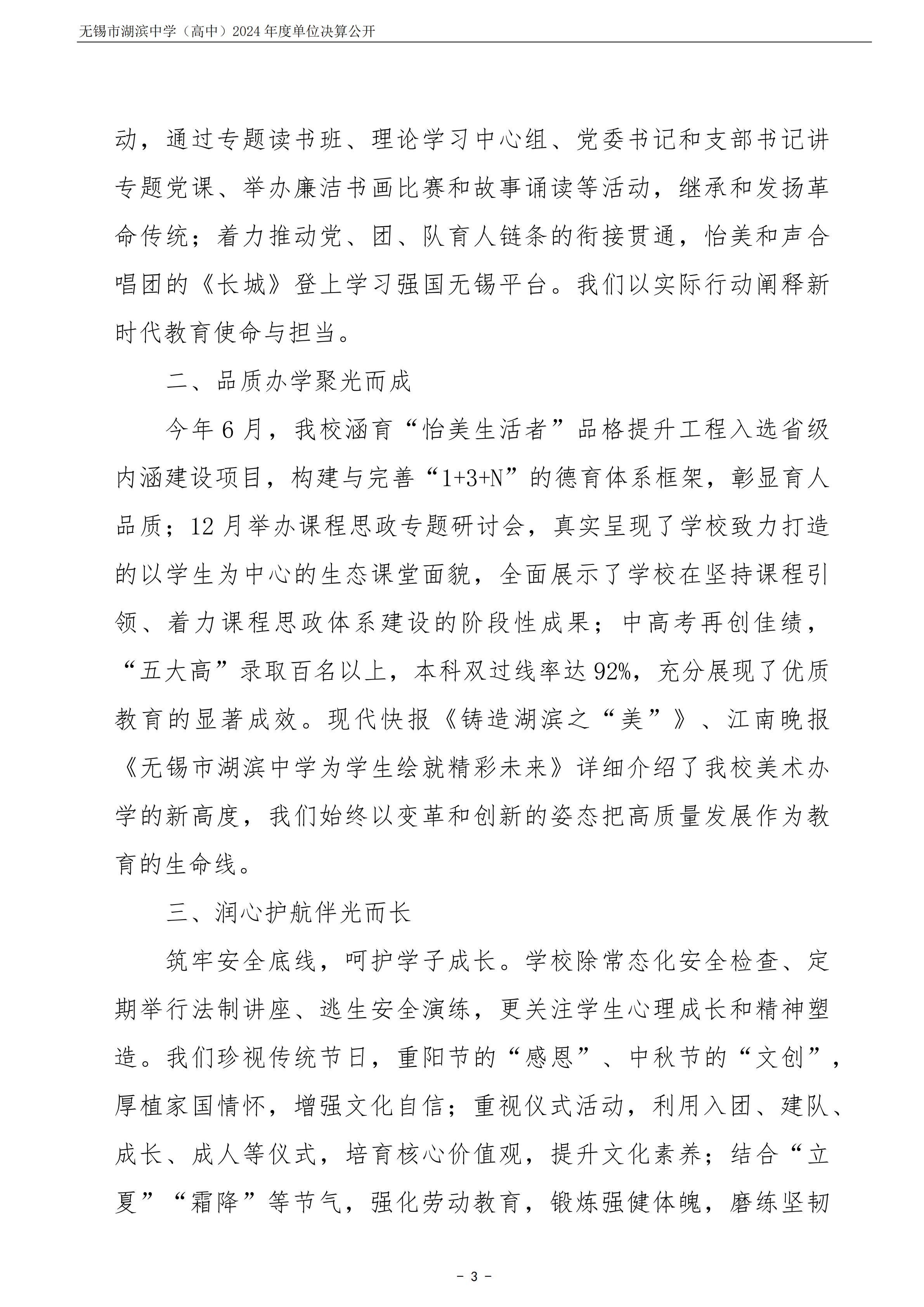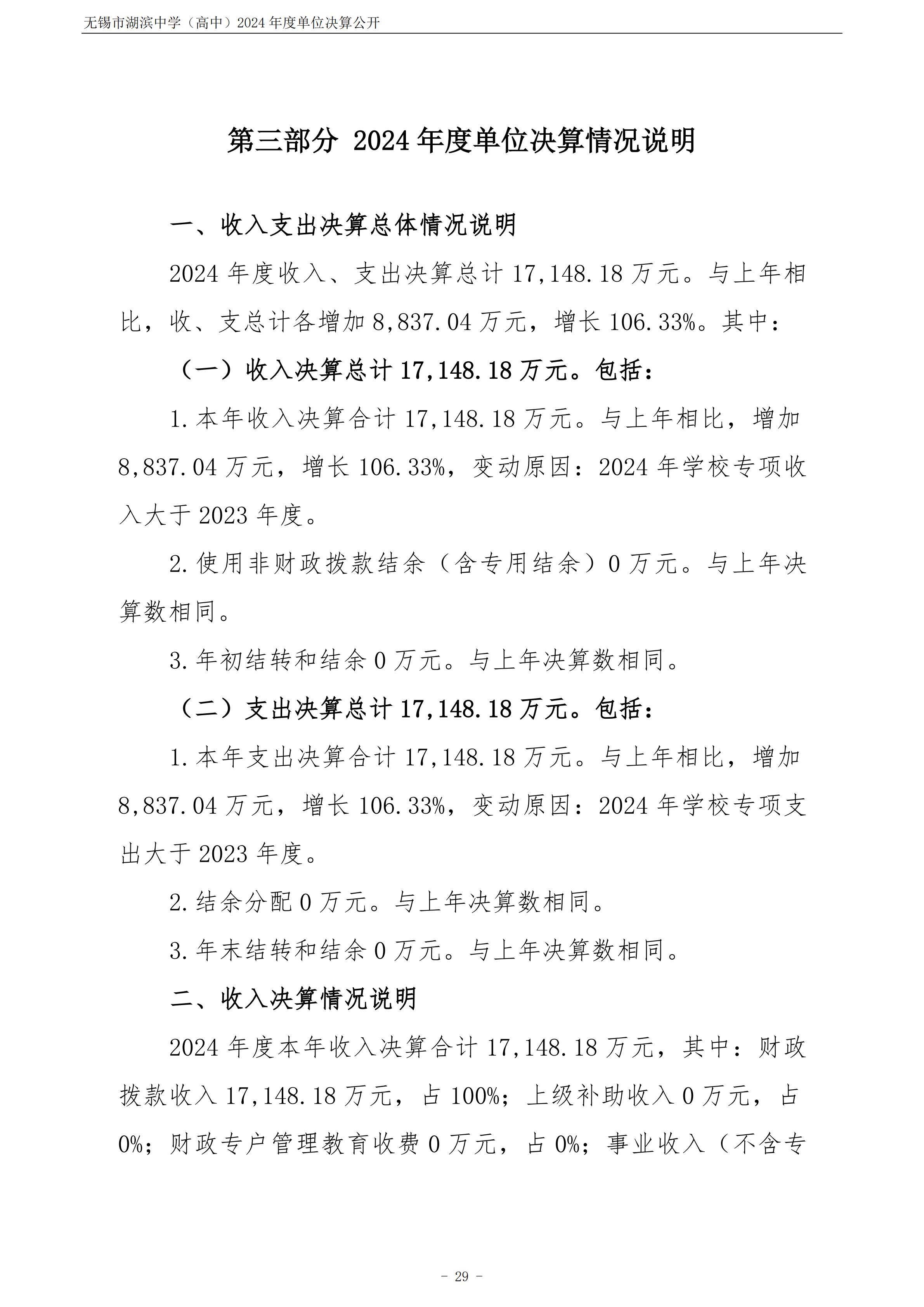 无锡市湖滨中学(高中)2024年度单位决算公开