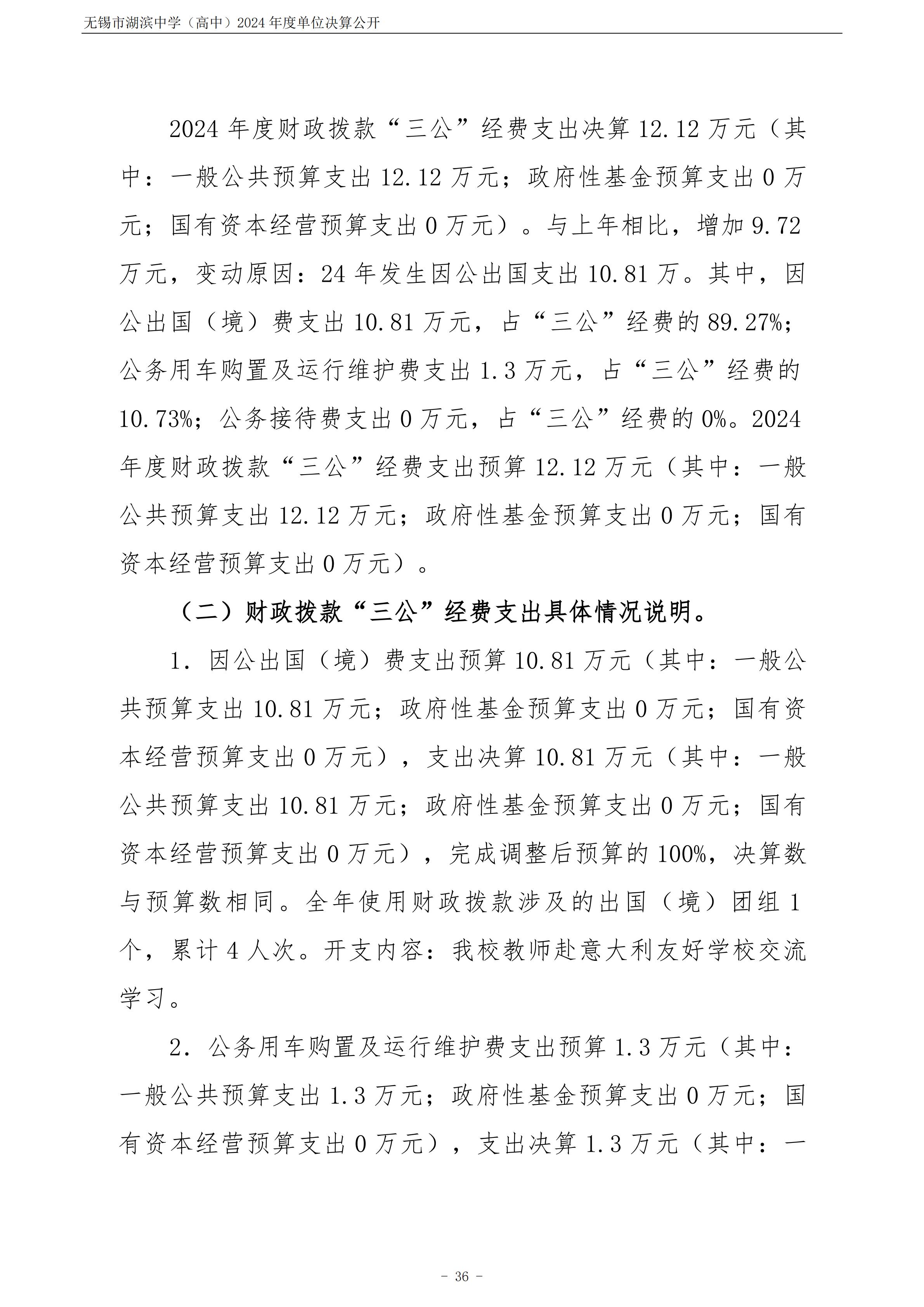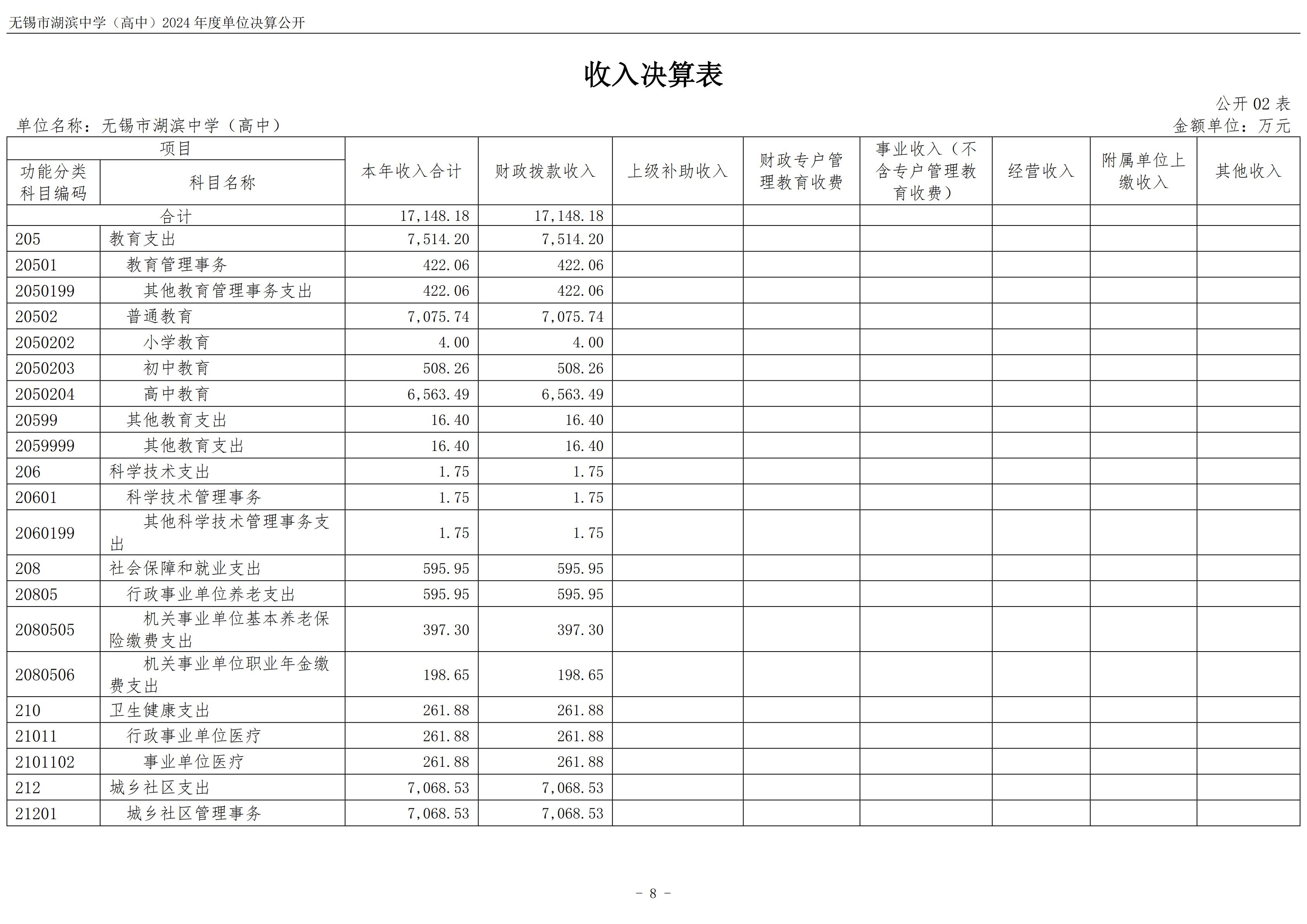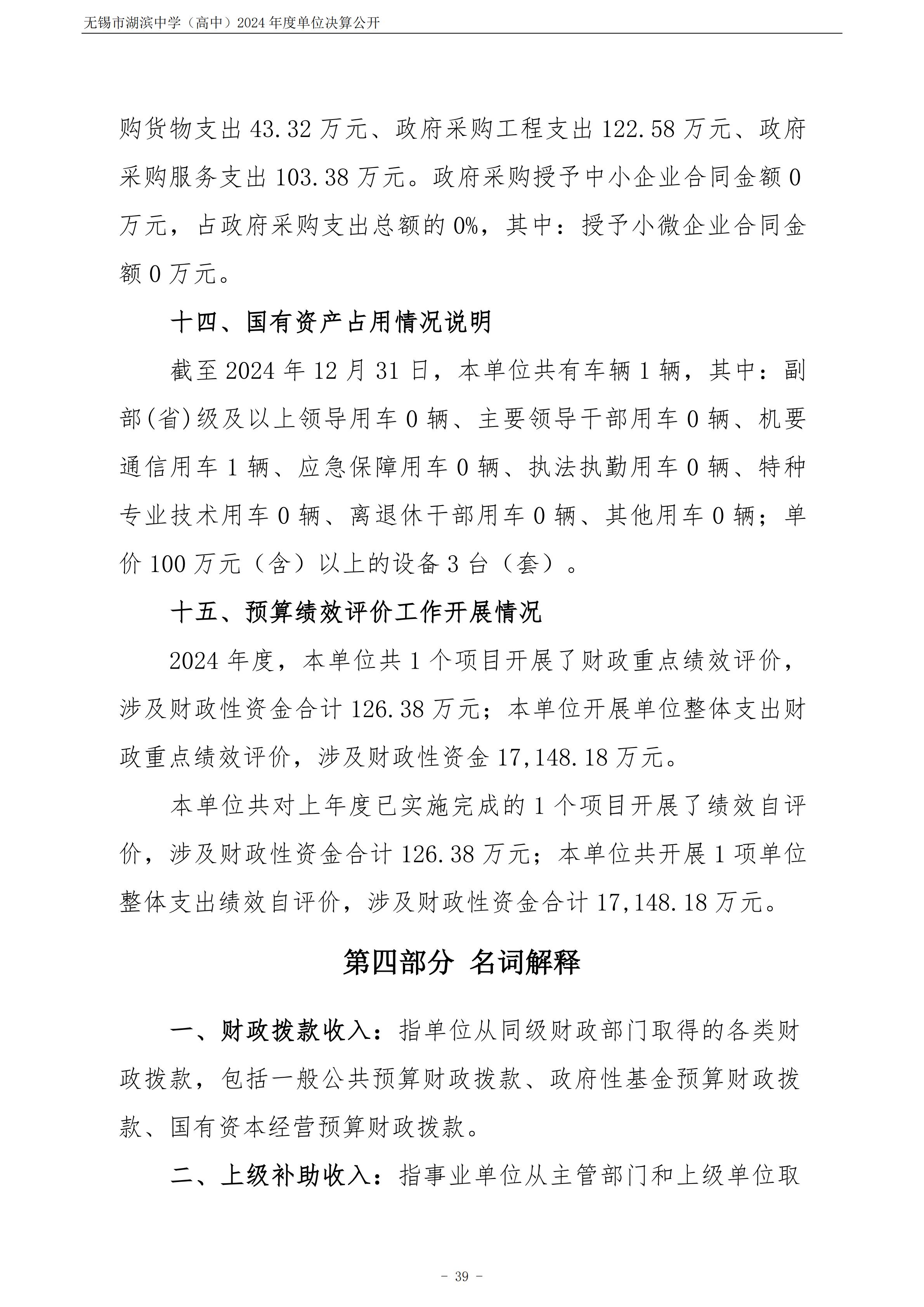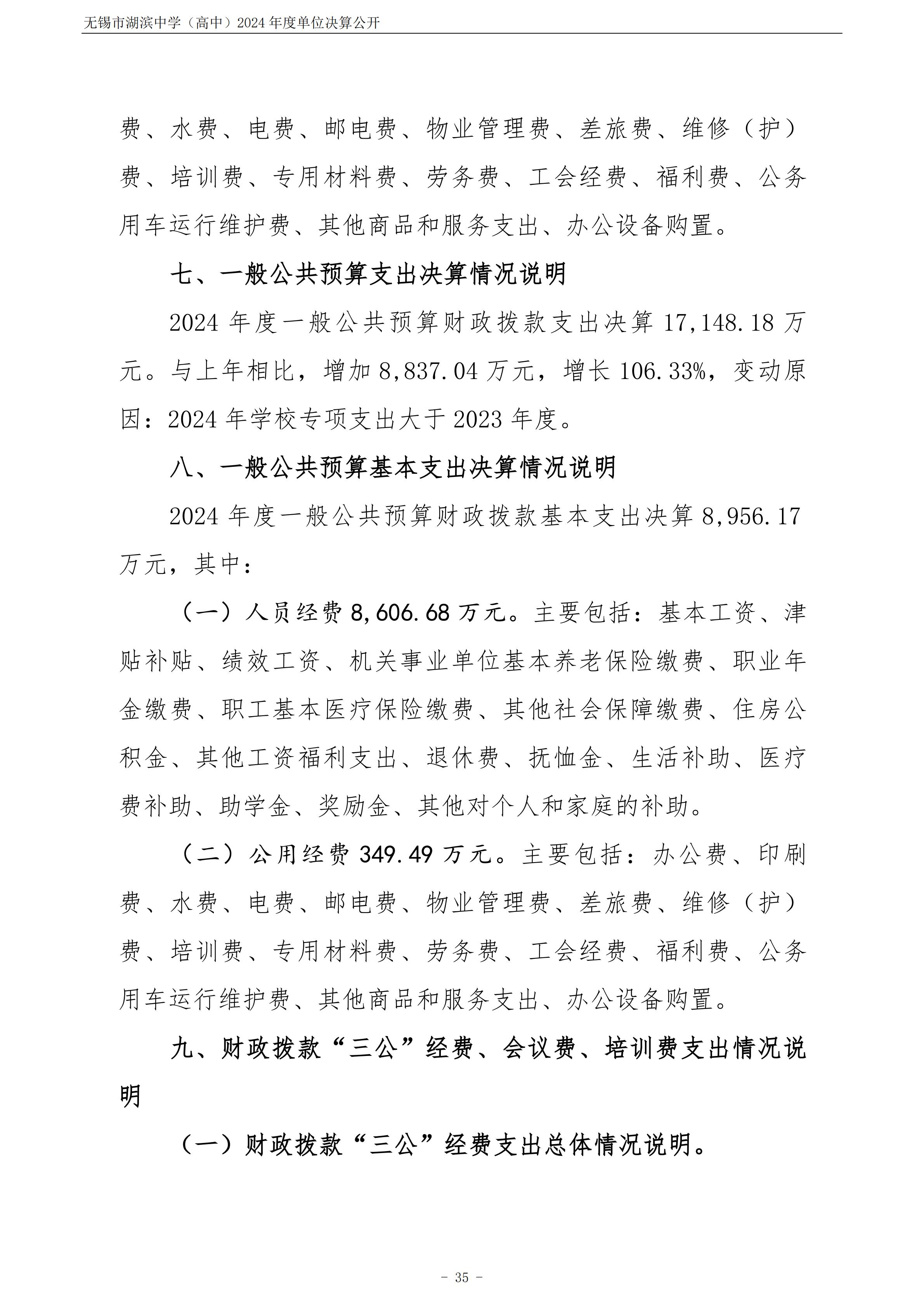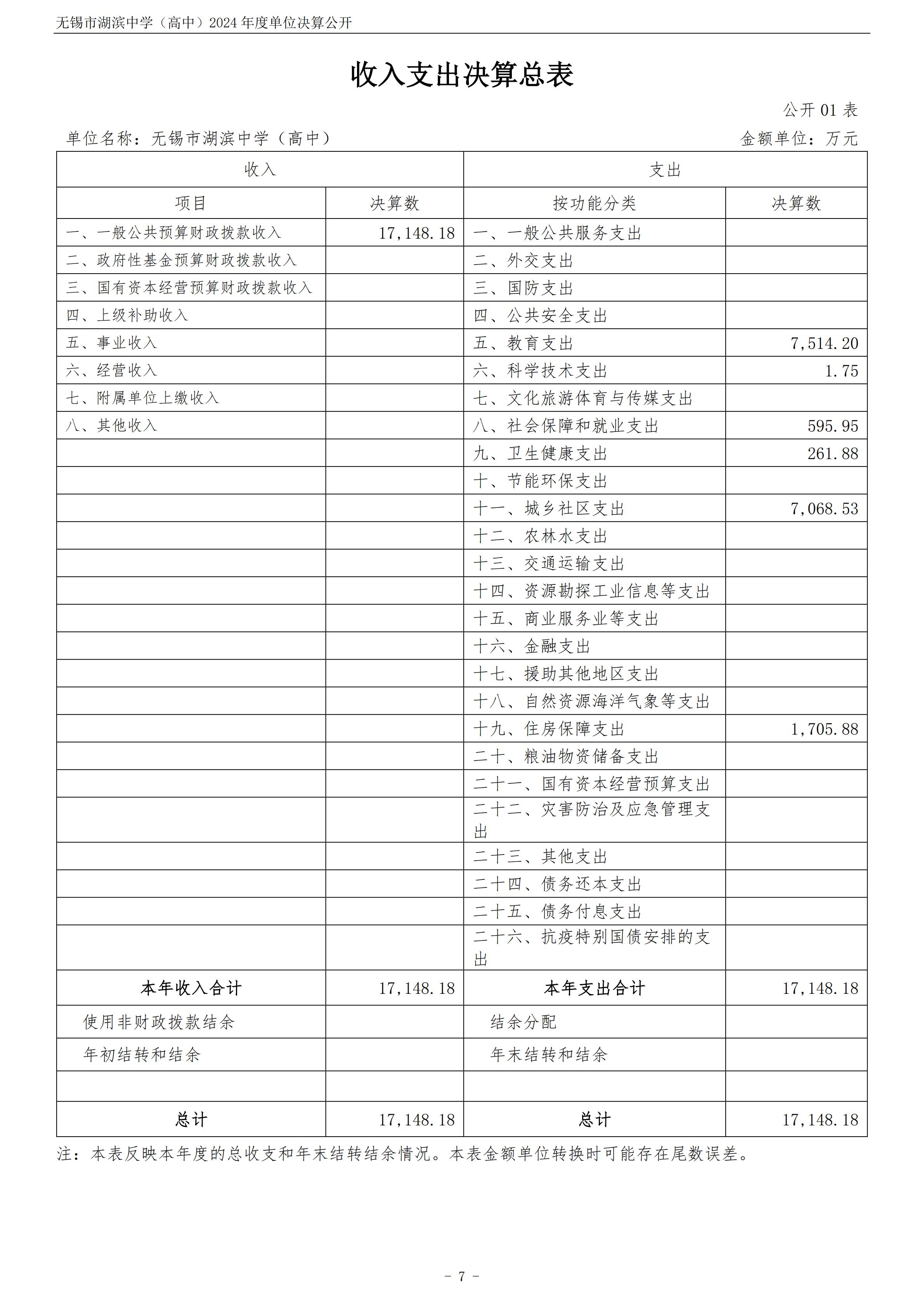 无锡市湖滨中学(高中)2024年度单位决算公开