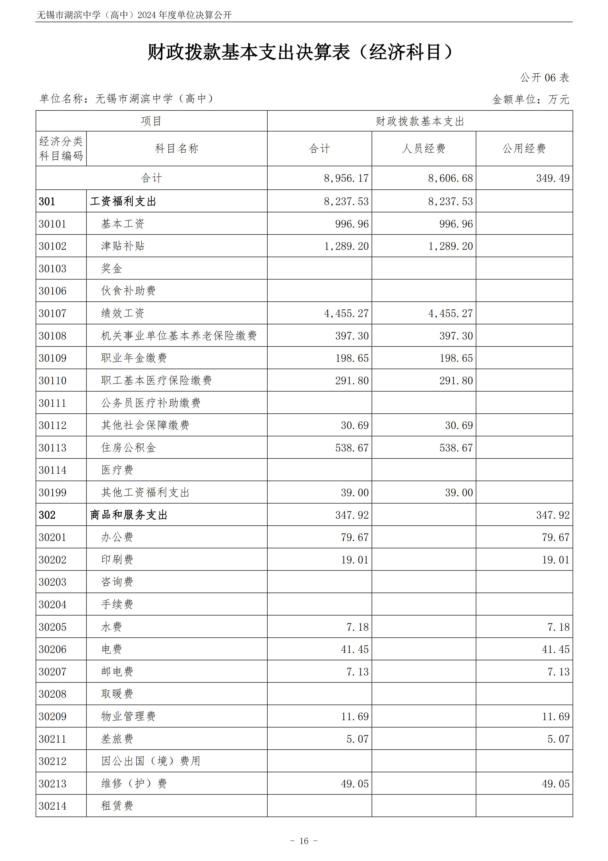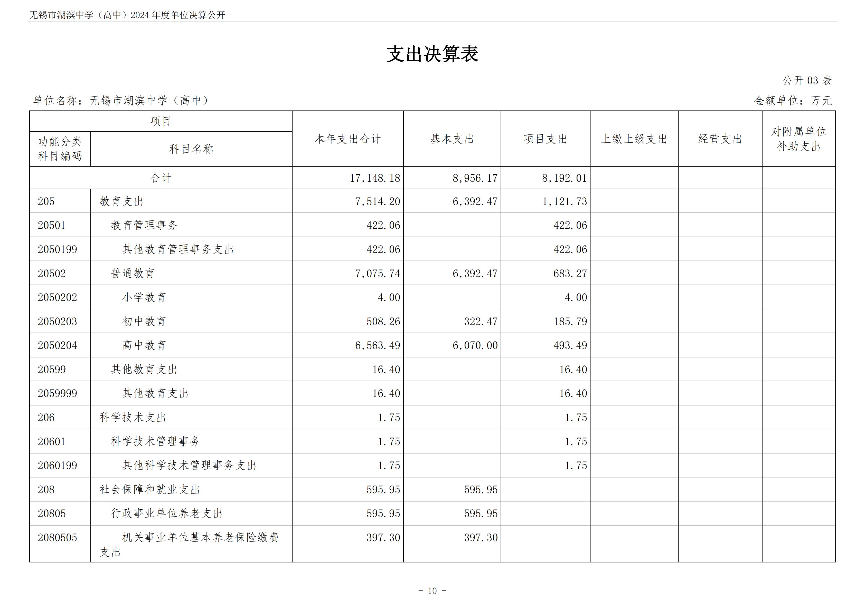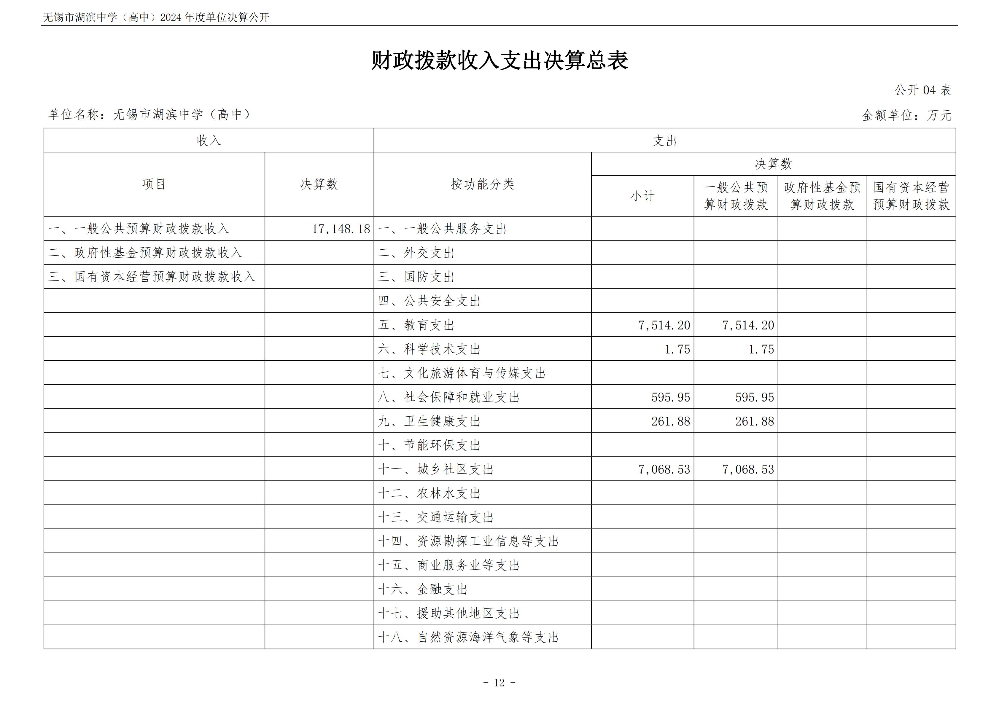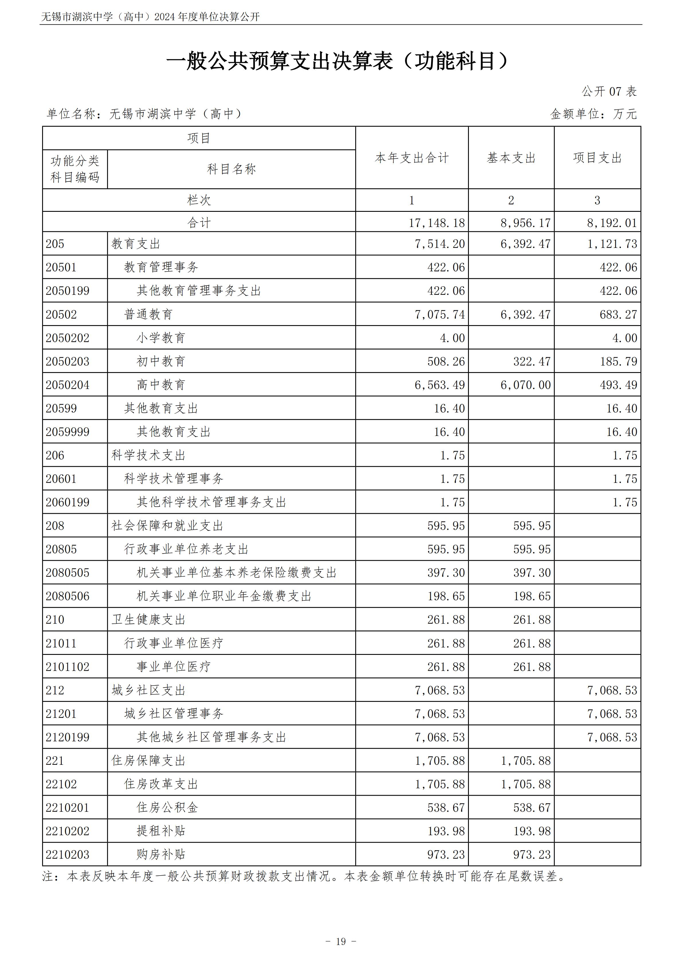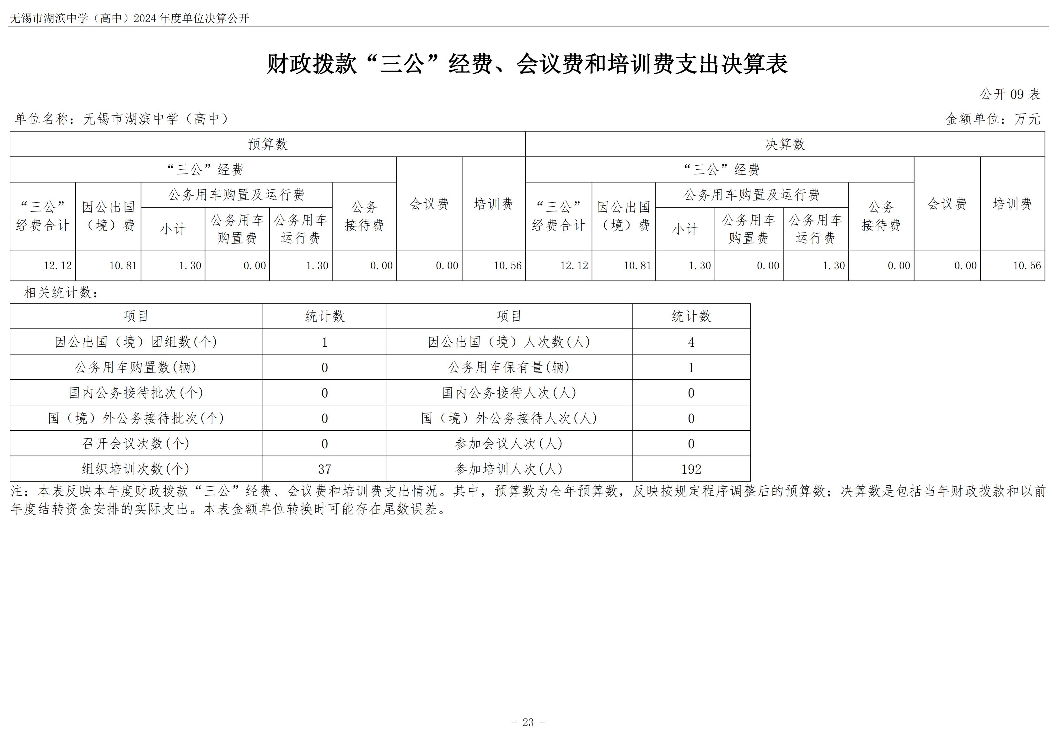 无锡市湖滨中学(高中)2024年度单位决算公开