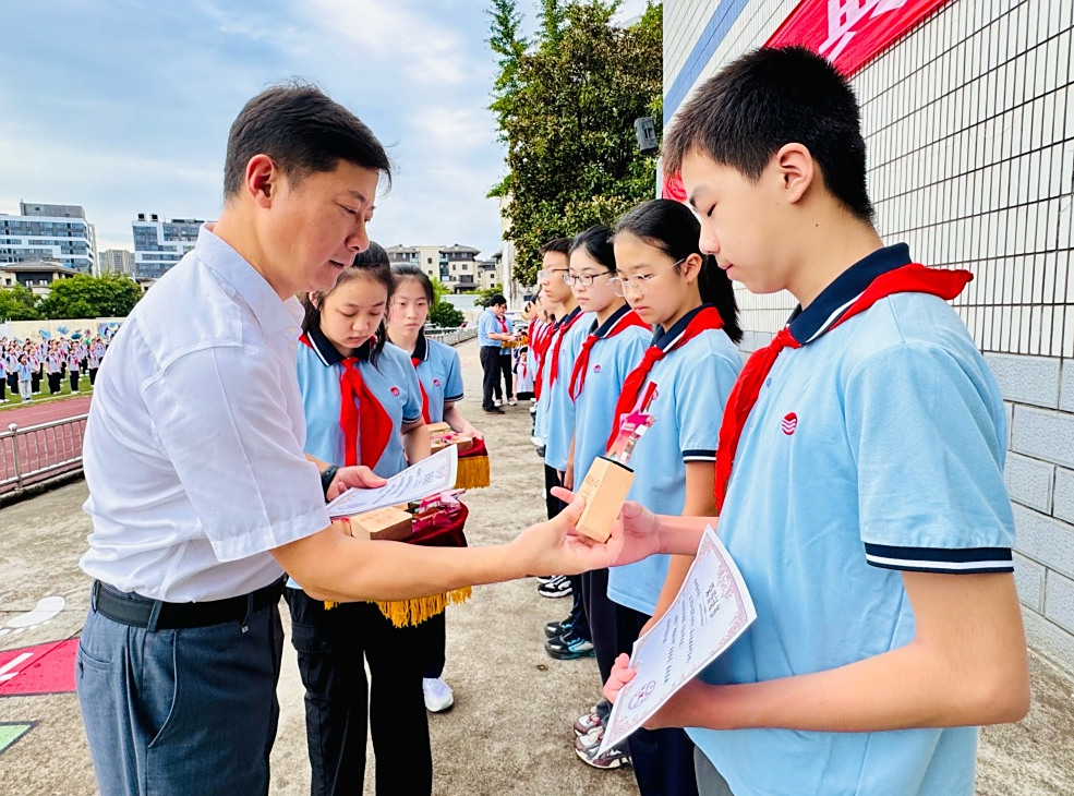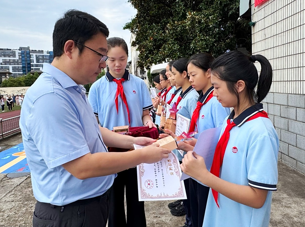 学校领导为获奖同学颁发奖状