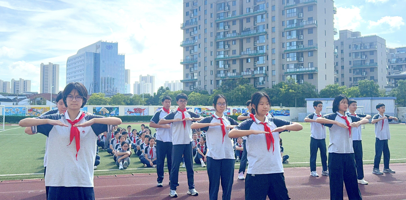 为深入贯彻落实无锡市义务教育学校“2·15”专项行动,切实保障学生每天校内综合体育活动时间不低于2小时,9月22-24日,初中部初一、初二、初三学子以班级为单位,在学校操场举行了广播操比赛。此次比赛是对广播操学习成果的一次检阅,更是展现了湖滨学子昂扬风貌。