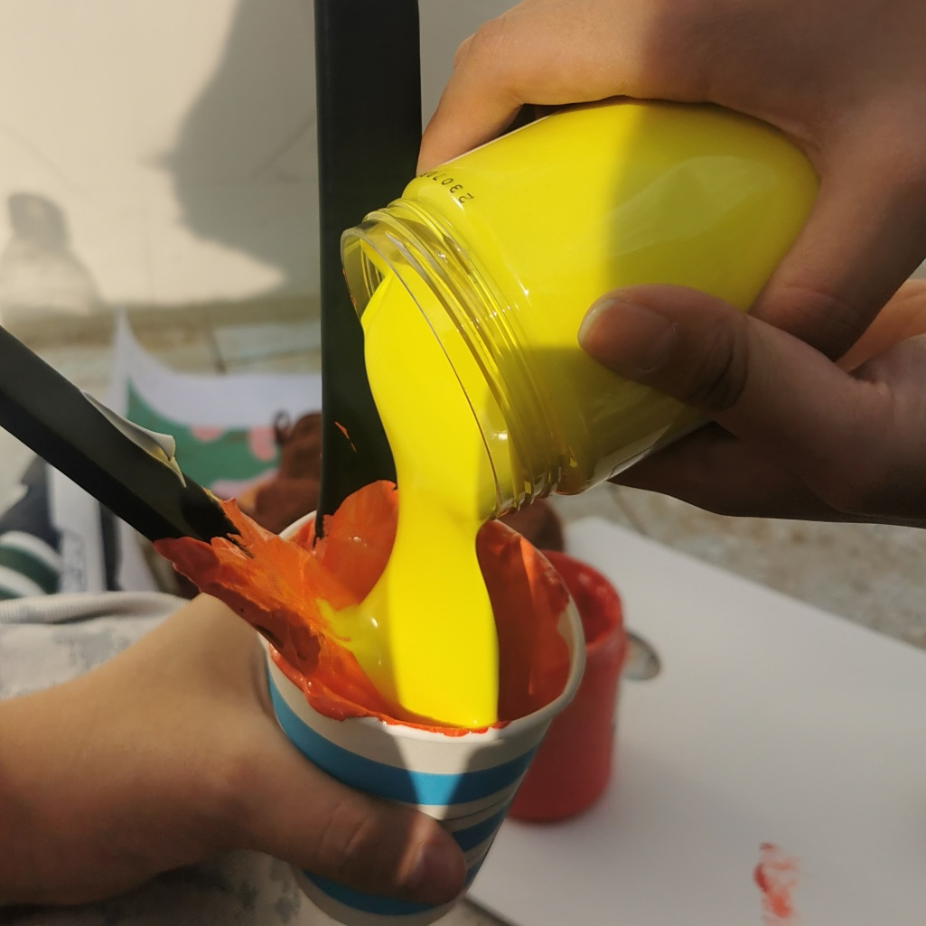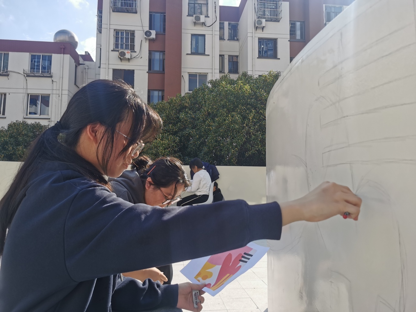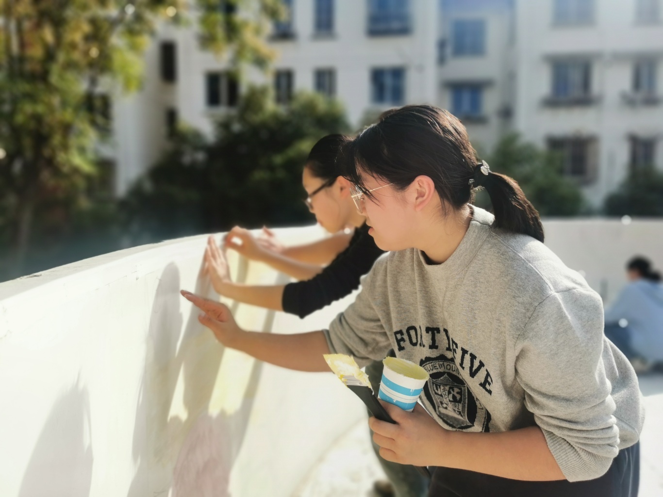活动当日,同学们化身“社区美容师”,投入了紧张而有序的“劳动创作”中。搬运颜料、清理墙面、精心勾勒、反复涂刷……这不再是轻松的纸上挥毫,而是对体力与协作能力的综合考验。秋日的阳光下,颜料沾染了双手,但同学们的热情却愈发高涨。
