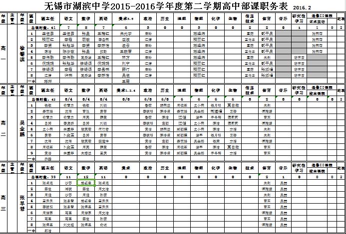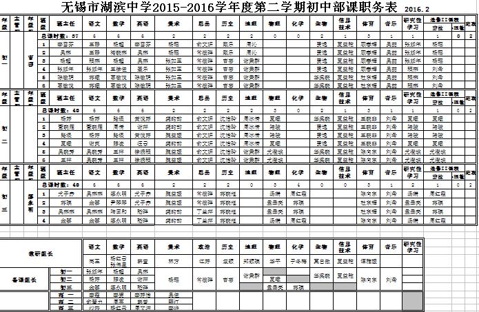 2015-2016学年度第二学期课职务表