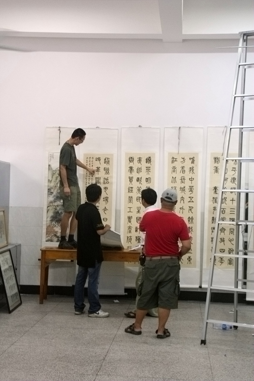 “祖国颂”师生书画联展布展工作热火朝天