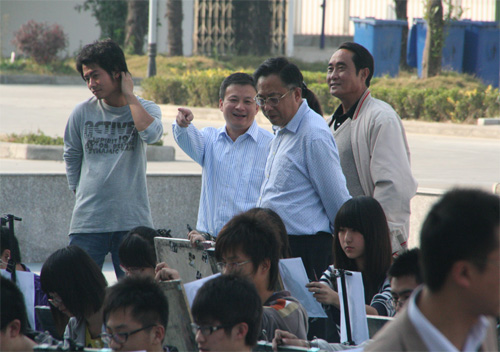 姜堰市美术学校丁校长(左) 无锡市湖滨中学王校长(中) 海安艺术学校徐校长(右)